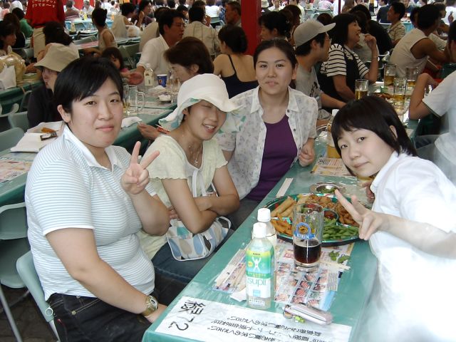 0807大通りビアガーデン アルバイトしている子がいたので,一部のゼミ生と大通りへ。大盛況でした。ここは大通り7丁目キリンビールです。8丁目がサッポロビールです |