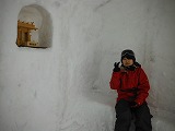 札幌国際スキー場にあるかまくらの内部です。本日は昨晩からの雪のせいで今時なのにパウダー。場所によっては膝くらい積もっているゲレンデもあって、大満足