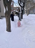 孫の人生2回目の雪歩き(雪あそび)です。なんとかぎりぎり歩ける程度です。ちょっと不思議なのはママの足です。どこにいった?